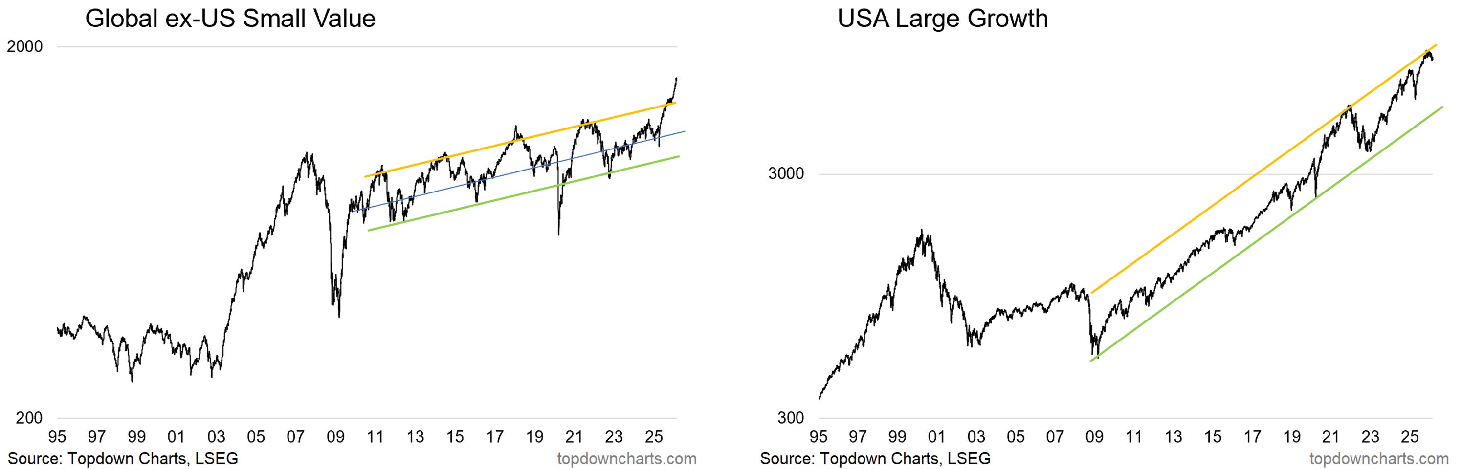 As such, I’d call this pair of charts collectively bullish in that the “relative value trinity” group (global/small/value) are picking up the slack from lackluster US large growth/tech.