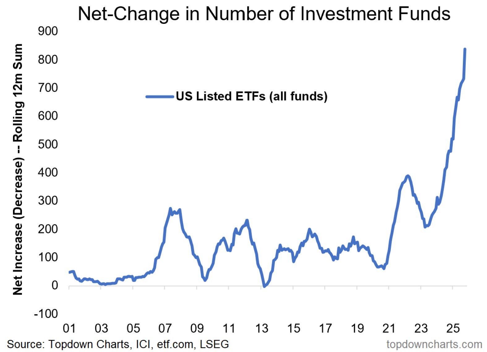 Key point: There has been a scrambling surge in ETF launches (a sign of the times as speculation, greed, and hype take hold).