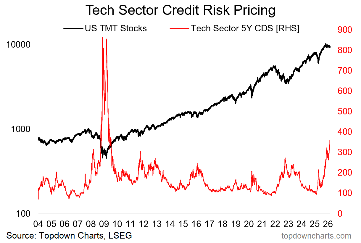 To illustrate that last point, Tech Sector CDS pricing has been trending higher and higher… while tech sector stocks have been drifting lower. This is enough to keep us on edge on Tech, especially as the downside risks are mounting.