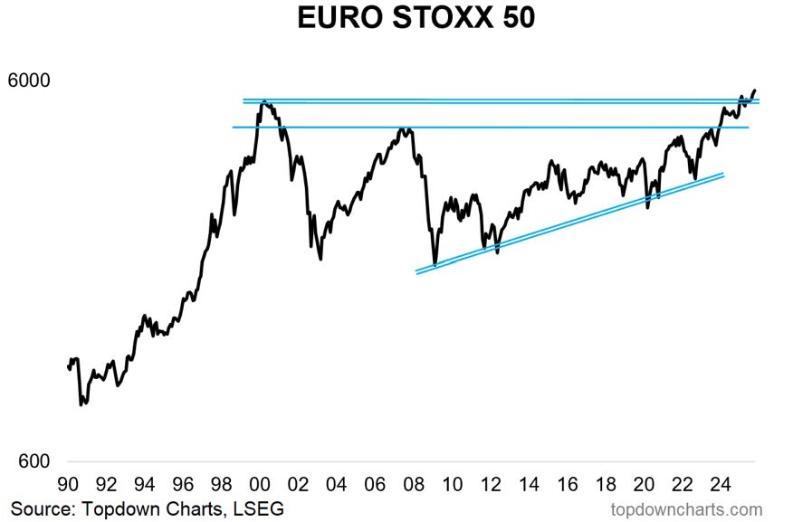 Key point: European equities have broken out to new all-time highs (after 25 years).