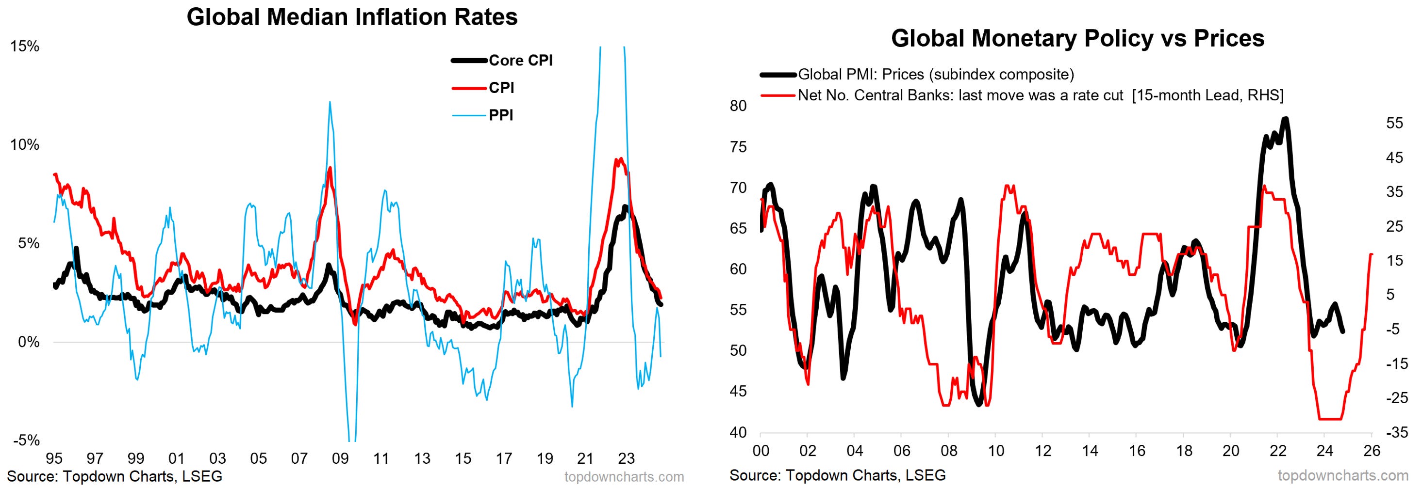 The global monetary policy pivot to rate cuts takes away previous growth headwinds, and will increasingly add growth tailwinds (and boost confidence/stocks).