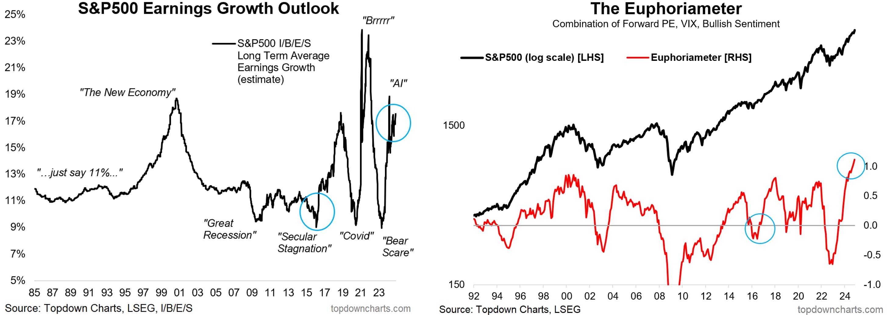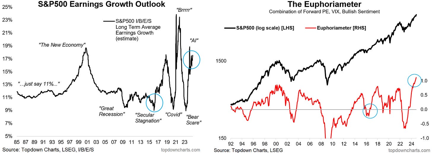 Bottom line: It’s hard to extrapolate what happened when Trump got elected in 2016 to 2024 as the background context (valuations, sentiment, policy) is entirely different (high hurdle for stocks to head higher).