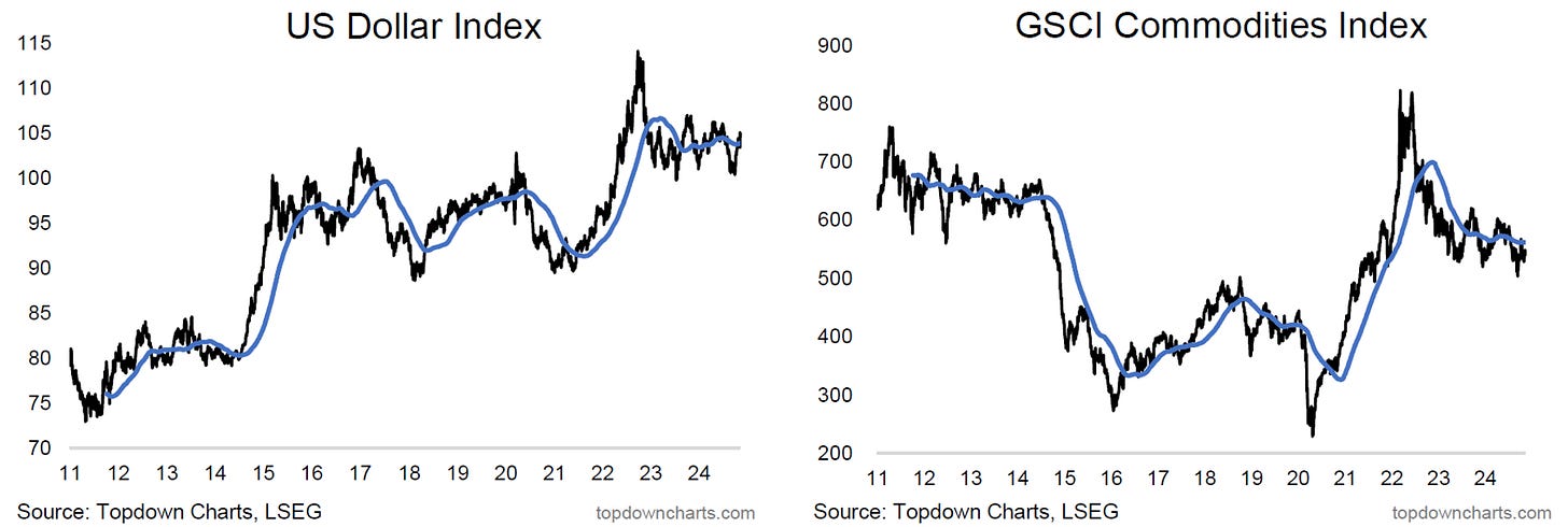 That monetary easing, along with bullish prospects for commodities, a turnaround in the backlogs indicator, still historically elevated inflation expectations, and still tight labour market makes for credible inflation resurgence risk in 2025; especially should global growth reacceleration become a reality. Add to that the consensus that many of the incoming Trump admin policies are likely to be inflationary, and it only builds on that background context.