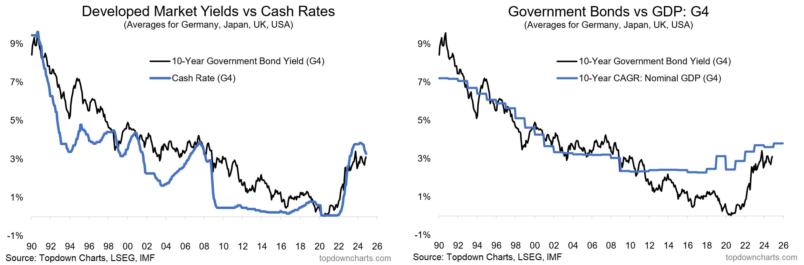 The long-term rate of inflation model, long-term nominal GDP growth, and pace of global listed company capex all point to the prospect of a new higher range for government bond yields across developed markets.