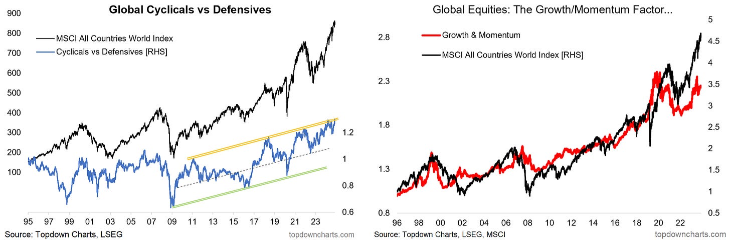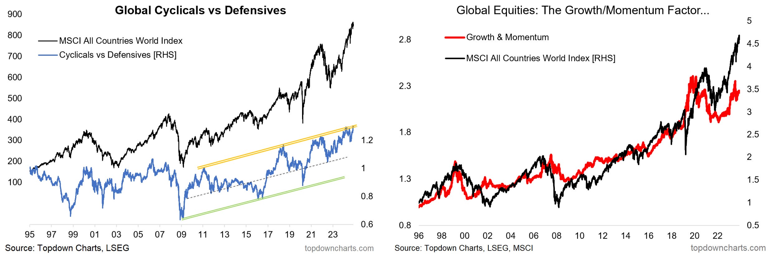 -Cyclicals vs defensives and momentum + growth factors are presenting risk flags