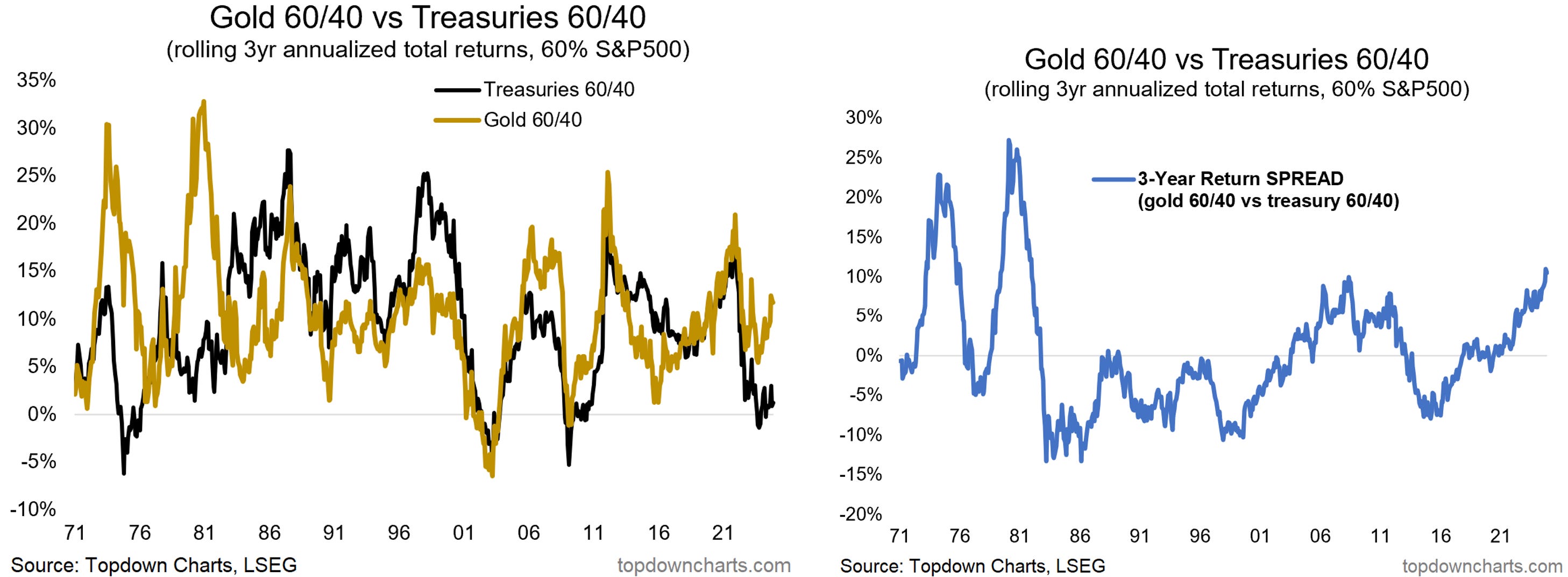 Given the existing run in gold (and expensive valuations now), vs cheap valuations for bonds, now is probably not the time to chase gold 60/40, rather bond 60/40 may do better, or a combination, or… just taking actually a wider universe of assets, which most best-practise allocators actually do nowadays.